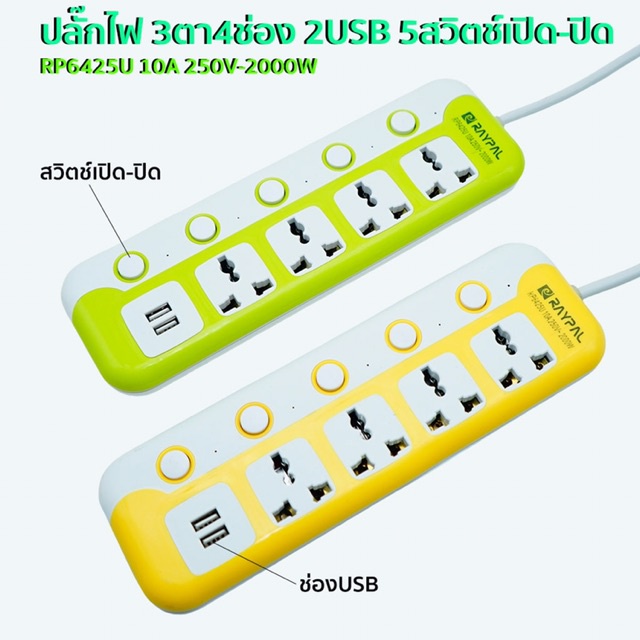 รายละเอียด2200 W มีช่องเสียบ 3-4 ช่องทำจากวัสดุคุณภาพสูงสามารถใช้งานได้นานการออกแบบที่น่ารักมีสีสันความยาวประมาณ 2/5 เมตรความถี่ 50/60 Hzแรงดันไฟฟ้า 10A / 250V4 ช่อง + ช่อง USB 2 ช่องพร้อมสวิตช์ 5 ช่องสามารถใช้กับคอมพิวเตอร์ทีวีตู้เย็นโทรศัพท์และเครื่องใช้ทั้งหมด