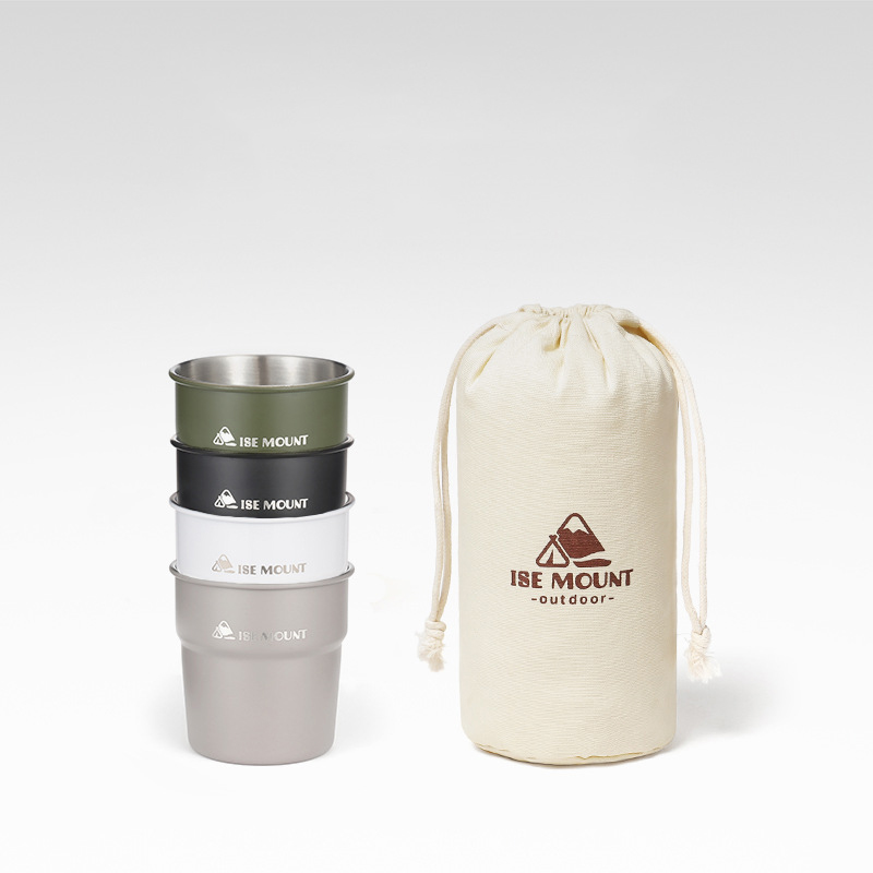 ชุดเซ็ทแก้วน้ำสแตนเลสสำหรับตั้งแคมป์ พร้อมกระเป๋าพกพาสะดวก