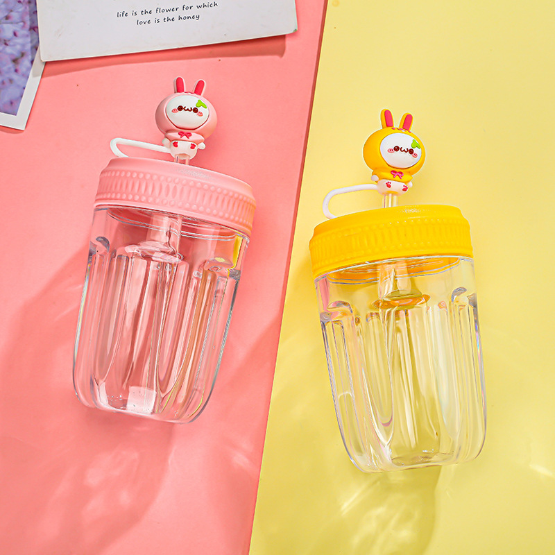 แก้วน้ำ แก้วใส่น้ำ แบบพกพา ตัวการ์ตูน พร้อมหลอด ขนาด400 ML