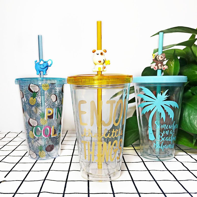 แก้วพลาสติก2ชั้น แก้วเก็บความเย็น กระบอกน้ำ แก้วน้ำ แก้วน้ำแบบใส ทรงคริสตัล