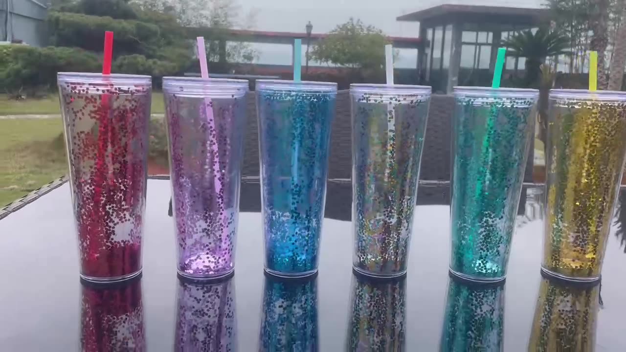 แก้วกากเพชร แก้วพลาสติก แก้ว2ชั้น แก้วเก็บความเย็น กระบอกน้ำ แก้วน้ำ แก้วน้ำแบบใส ทรงคริสตัล ขนาด 20oz