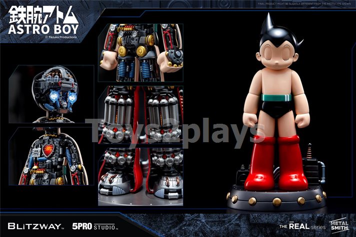 Why is he named Atom (Astro Boy)?” Why did Osamu Tezuka give such a little robot an intense name of Atom? Although humans have obtained the ability to create energy through nuclear power and the convenient life of dazzling abundance, they have also experienced irremediable wounds and fears through nuclear weapons. Through Atom, Osamu Tezuka delivered a strong message that violence is never justified and to persuade by dialogue rather than overpowering and dominating the enemy. Blitzway analyzed Atom and Osamu Tezuka’s message in animations and comic books, and was able to determine the direction of our statue production. With formidable power hidden behind the cute and sleek appearance, we wanted to express what may look cute at a glance, but is strong with nuclear power. Lightly press the heart-shaped mechanism to make the heart start beating and glow red. Nuclear fusion of the two legs begins to pulsate slowly. Staring at reality, Atom’s eyes gaze with a cold and blue stare. Atom’s warm heart in his cold metal body begins to beat. Product Information License : Astro Boy Licensor : Tezuka Productions Series : The Real Product No. : BW-NS 50101 (DX ver.) BW-NS 50102 (Normal ver.) Product Type : Superb Anime Statue (Non scale) Product Size : 1. Atom Figure : H 300mm W 110mm 2. DX Diorama Base : H 470mm, W 250mm Release : 4Q, 2019 SPECS 1. Face, Hand : PVC 2. Body : ABS, Metal, POM 3. Base : ABS 4. Equipment : LED, Electrical components 5. Package : Color Box + Styrofoam [BW-NS 50101] – Astro Boy – Atom. Non scale Anime Statue Highly detailed likeness of Astro Boy from the original comics. Exquisitely designed diorama base, equipments and stand. Upper and lower moving neck, rotating wrist. Front removable and full body or half body replaceable exterior parts. All the exterior parts are Alloy metal. 5 LED Light-up functions on the Astro boy 7 LED Light-up functions on the Diorama base DX ver. Includes both a Diorama base and Stand The storage function at the bottom of the Diorama. Accessories [ DX ver. & Normal ver. ] 1 Hair part 1 Open-eyed face part 1 Closed-eyed face part 1 Closed-eyed half face part 1 Chest part 1 Chest half part 1 Pair of arm cover parts 3 Pairs of hands (fist hands, open hands, machine hands) 1 Pants part 1 Pants half part 1 Pair of leg cover parts 1 Pair of shoes parts 1 Stand. [ DX ver. ] 1 Diorama base 1 Open chest part